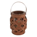 Candelabro Plástico con Vela LED , simula al rattán con una pincelada de envejecido, dando la apariencia de realismo. Es ideal para usar en exterior, puesto que su vela no se apagará con viento. Además su luz es tan real como una vela normal. Dimensiones 14x14x16cm