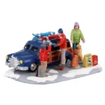 Auto de Vacaciones de Invierno – Esta figura coleccionable muestra a una familia cargando su auto para unas vacaciones de invierno. Ideal para recrear una historia de montaña en tu villa navideña.