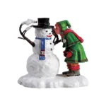 Añade a tu villa navideña esta encantadora figura de una niña jugando con un muñeco de nieve. Perfecta para crear escenas festivas llenas de ternura.
