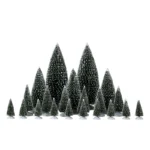 Set de 21 pinos nevados de diferentes alturas. Perfectos para añadir un toque natural y variado a tu colección. Ideal para quienes buscan detalles auténticos y encantadores para sus historias invernales.