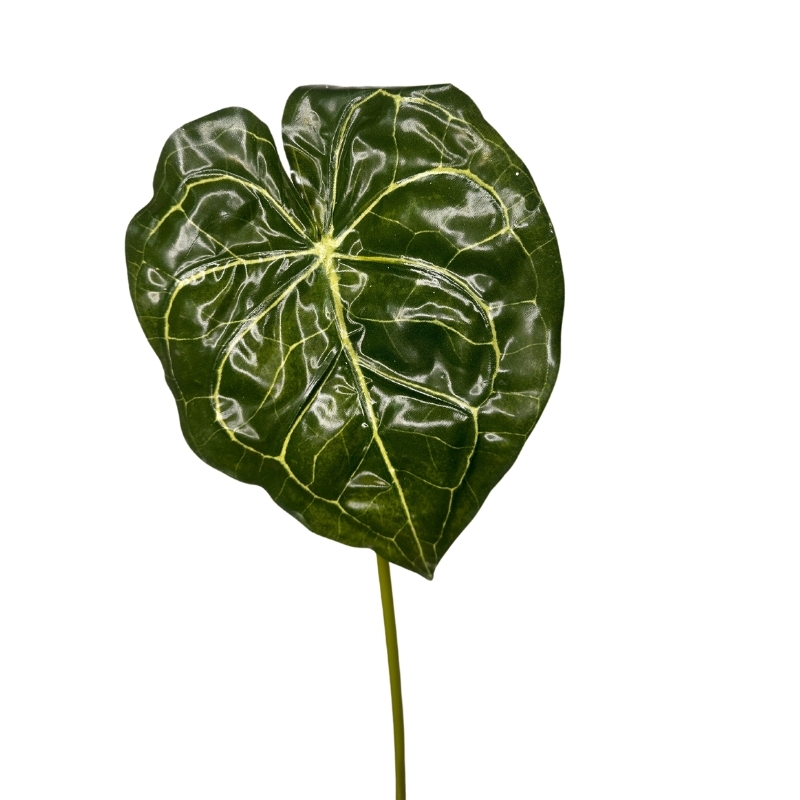 Hoja Anturium Exotico 67cm color verde. Su uso es variado pero siempre de interior ya que no cuenta con filtro UV. Puedes utilizarlo en arreglos florales, jardineras, jardines verticales o donde quieras! Fabricado en firme plástico tinturado el cual hace de este producto una vegetación de aspecto natural sin preocupaciones, no necesita luz ni agua. Te recomendamos complementar con flores artificiales, palmetas de pasto, otros follajes y/o macetas.