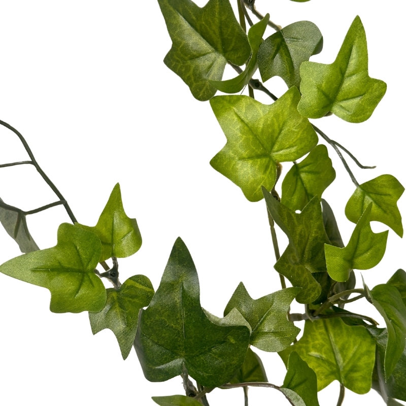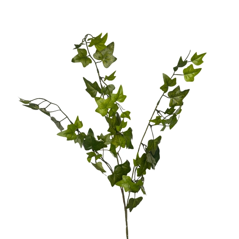Hoja Mini Ivy 55cm. Su uso es variado pero siempre de interior ya que no cuenta con filtro UV. Puedes utilizarlo en arreglos florales, jardineras, jardines verticales o donde quieras! Fabricado en firme plástico tinturado el cual hace de este producto una vegetación de aspecto natural sin preocupaciones, no necesita luz ni agua. Te recomendamos complementar con flores artificiales, palmetas de pasto, otros follajes y/o macetas.