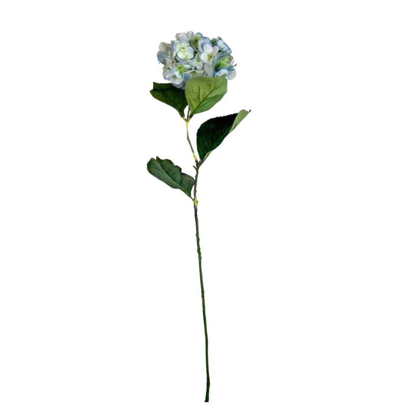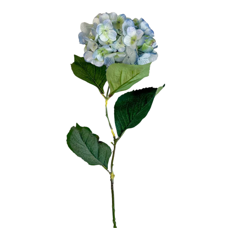 flor artificial Hortensia de 76cm color azul. Crea ramos de novia, arreglos de pared, estantería o pequeños detalles florales que den un toque de alegría a tus espacios. Las rosas nunca pasan de moda! Te recomendamos complementar con follajes para dar aún más naturalidad. No requiere invertir tiempo en cuidados especiales, ya que está hecha de suave tela teñida en distintos tonos y firme plástico que forman un producto de larga vida útil. Su uso es de interior, ya que no cuenta con filtro UV. Combínalas como quieras!