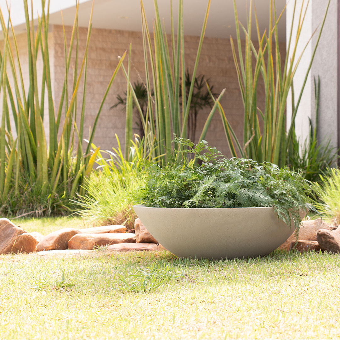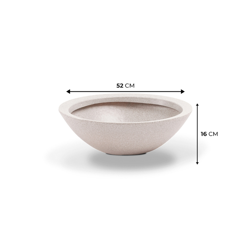 Macetero liviano fabricado en plastico 100% reciclado modelo Bacia 53×16 color blanco marmol, para uso interior y exterior.