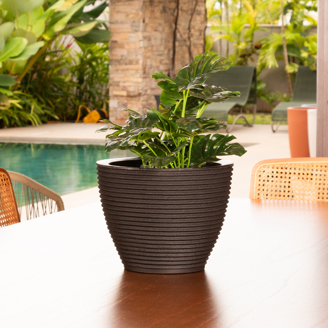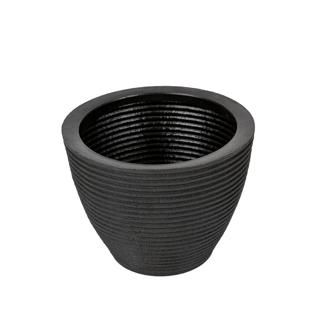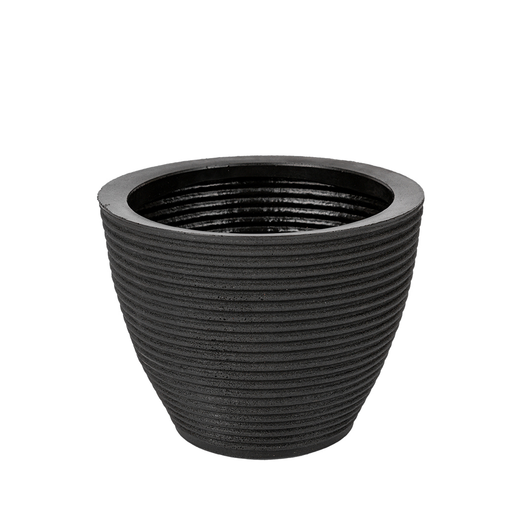 Macetero liviano fabricado en plastico 100% reciclado modelo Riscatto 26×22 color negro, para uso interior y exterior.