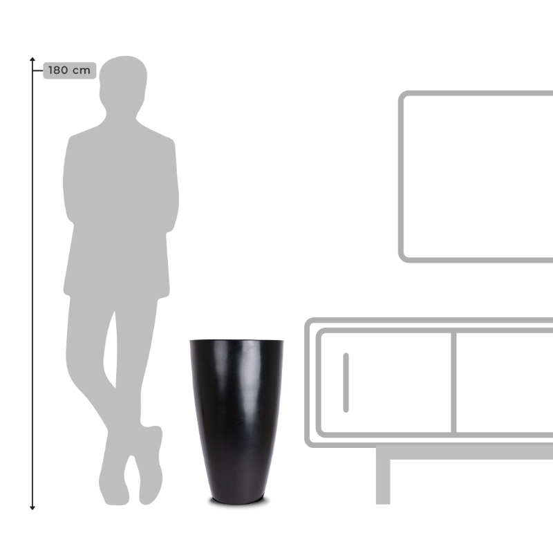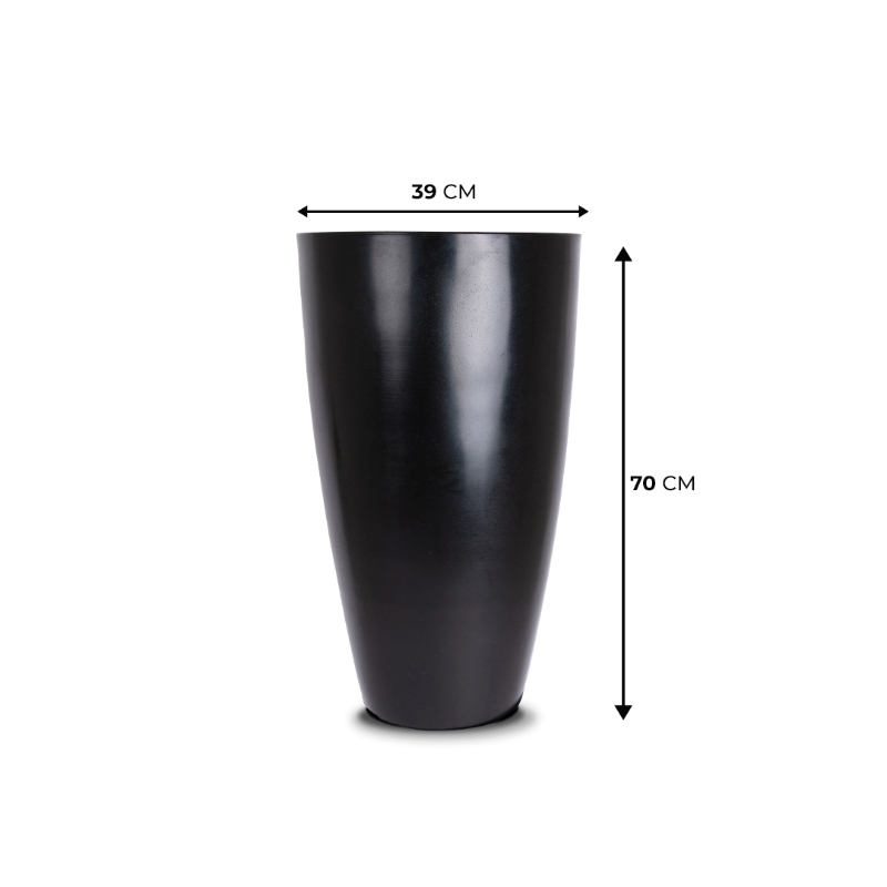 Macetero liviano fabricado en plastico 100% reciclado modelo Vietnamita 39×70 brillante color negro, para uso interior y exterior.