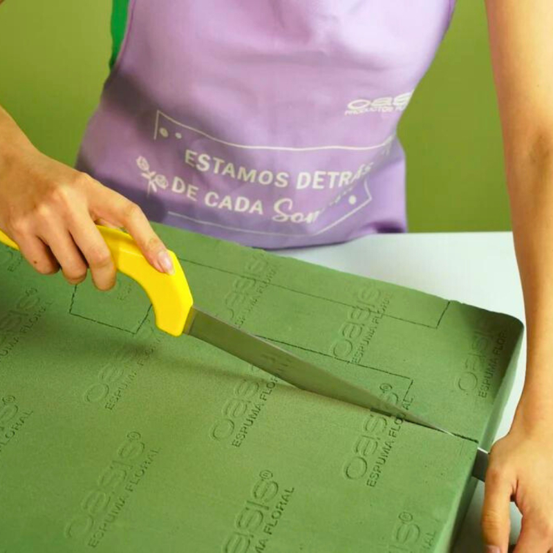 Placa Espuma Floral Oasis 57x46x8 cm, pieza rectangular ideal para decoración de grandes superficies. Perfecta para entradas de salones, eventos corporativos, logotipos y frases. Ofrece una base sólida para diseños extensos.