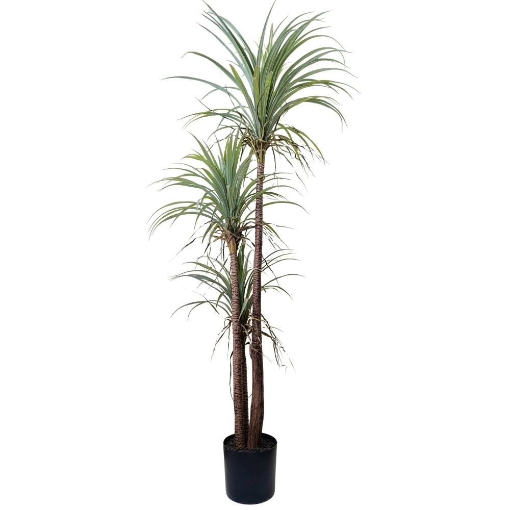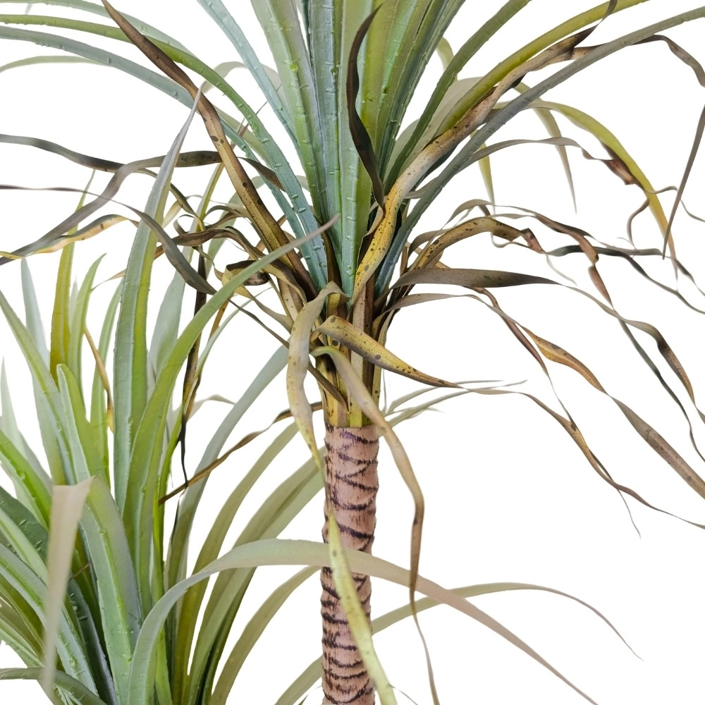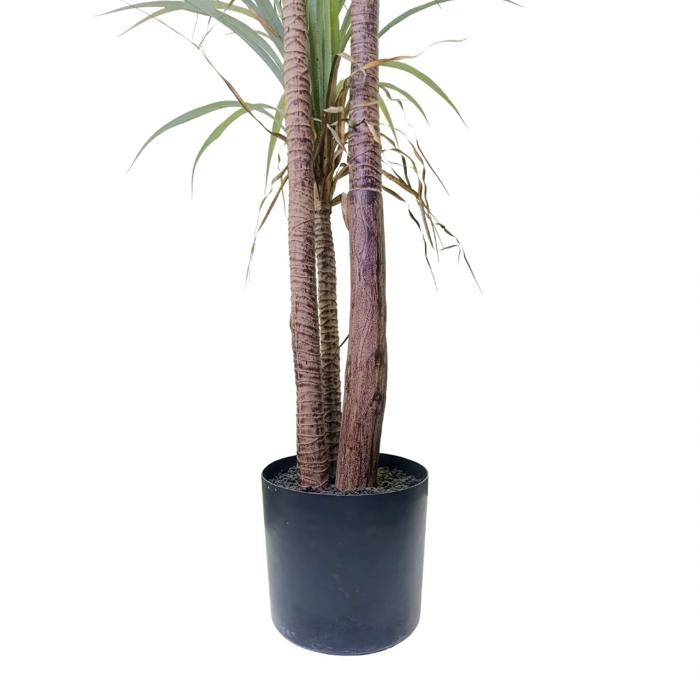 La Planta artificial Yuca de 1,8m de altura y 70cm de ancho es perfecta para dar un toque de frescura a tus espacios interiores. Sin necesidad de riego ni abono, solo necesita limpieza ocasional para mantener su brillo.