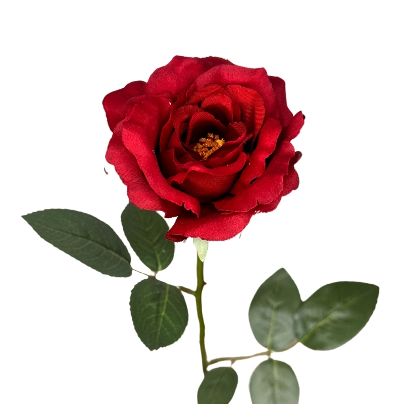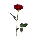Flor artificial Rosa 58cm color Rojo. Crea arreglos de pared, para estantería o pequeños detalles florales que den un toque de alegría a tus espacios. Te recomendamos complementar con follajes para dar aún más naturalidad. No requiere invertir tiempo en cuidados especiales, ya que está hecha de suave tela teñida en distintos tonos y firme plástico que forman un producto de larga vida útil. Su uso es de interior, ya que no cuenta con filtro UV. Combínalas como quieras!