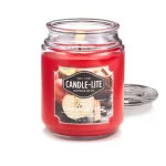 Vela aromática con fragancia cálida y especiada de manzana y canela en pote de vidrio. Perfecta para un ambiente acogedor y hogareño.