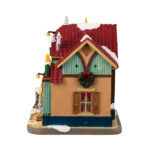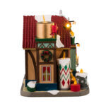 Villa Tienda de Velas hecho con una combinacion de resina y ceramica, un coleccionable que es una encatadora tienda de velas, llamada Kristin Candle Shop, que está adornada en su exterior con mágicas velas de multiples tamaños que se enciendan junto a una excena interior. Añade esta tienda a tu colección de villas que le dará un ambiente mágico. Incluye cable USB para conexión y a su vez se puede conectar a pilas utilizando 3AA (pilas y transformador no incluido)