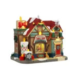 Villa Tienda de Velas hecho con una combinacion de resina y ceramica, un coleccionable que es una encatadora tienda de velas, llamada Kristin Candle Shop, que está adornada en su exterior con mágicas velas de multiples tamaños que se enciendan junto a una excena interior. Añade esta tienda a tu colección de villas que le dará un ambiente mágico. Incluye cable USB para conexión y a su vez se puede conectar a pilas utilizando 3AA (pilas y transformador no incluido)
