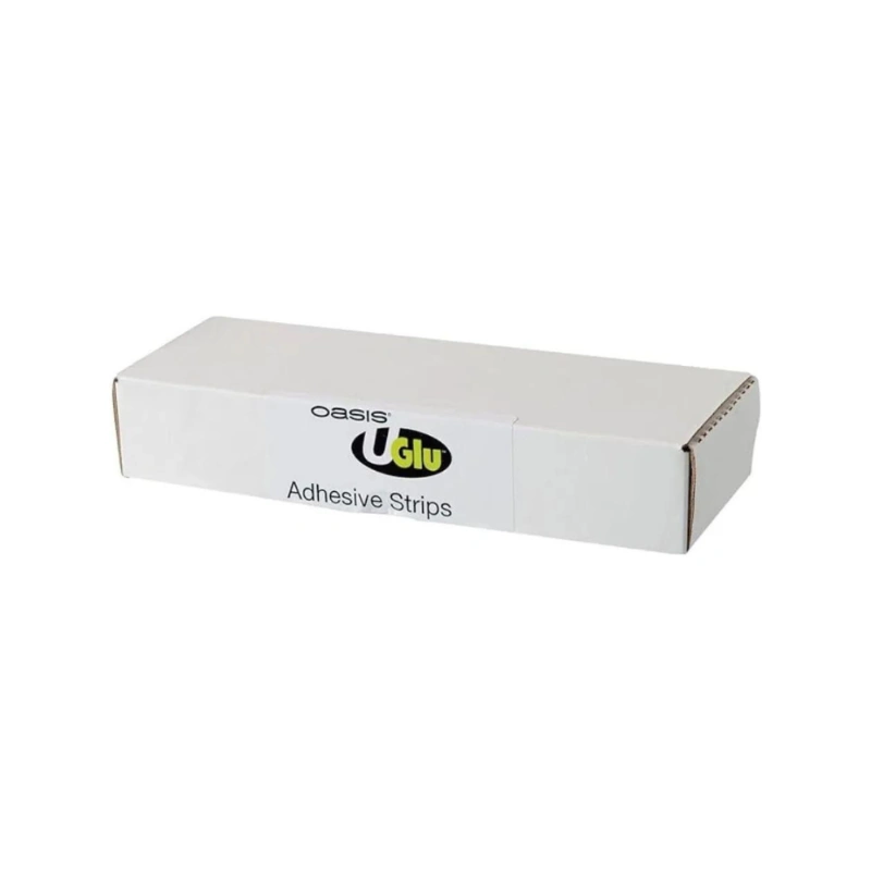 Adhesivo UGLU OASIS, que combina la fuerza de un adhesivo con la comodidad de una cinta. Se adhiere inmediatamente a superficies como plástico, metal, tela y más, sin dejar residuos. Resistente al agua y a la intemperie, ideal para aplicaciones en exterior. No es tóxico ni contiene ácido.