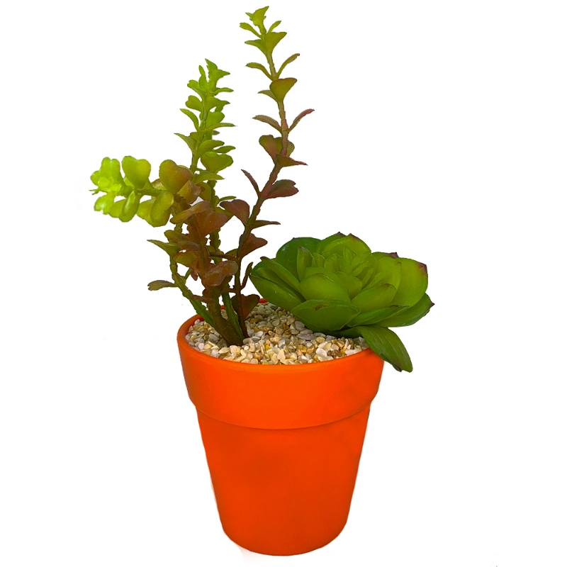Agrega un toque vibrante con nuestro arreglo de suculentas en macetero naranja de 10cm. Ideal para cualquier rincón interior. ¡Combínalo con otros modelos disponibles!