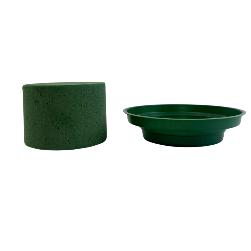 Centro de Mesa Oasis de 10×6 cm con base plástica para soporte y almacenamiento de agua. Ideal para arreglos florales de tendencias minimalistas y para reducir costos. La base evita escurrimientos y facilita el traslado.