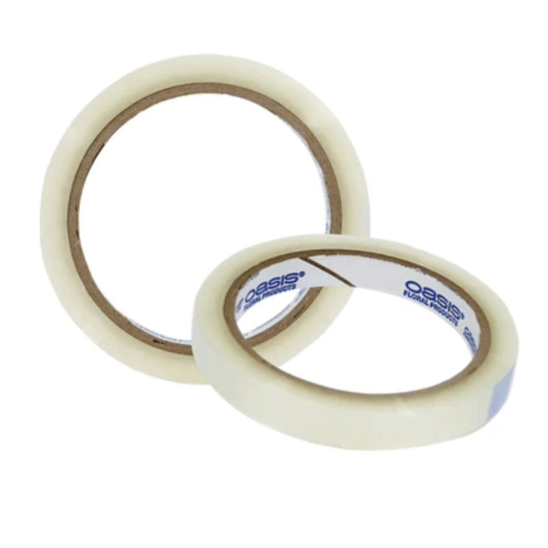 Cinta adhesiva Waterproof transparente de 6mm x 55m. Diseñada para fijar espuma floral en bases diversas. Resiste la humedad y es ideal para cámaras frías o sumergida en agua. No se adhiere a las manos y es forrada en algodón para un corte fácil y preciso.