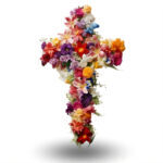 Cruz floral en espuma Oasis Deluxe, resistente con base de MDF. Ideal para arreglos funerales, primeras comuniones y días festivos religiosos. Incluye perforaciones para colgar y polietileno verde para retardar la evaporación. Dimensión: 76 cm.