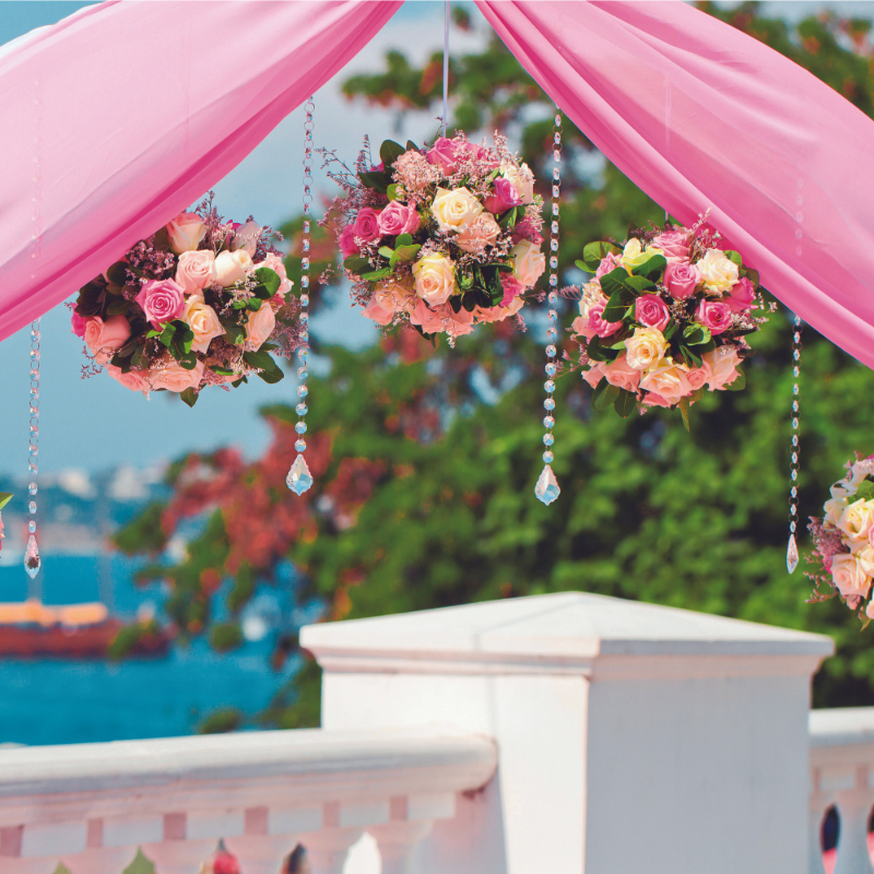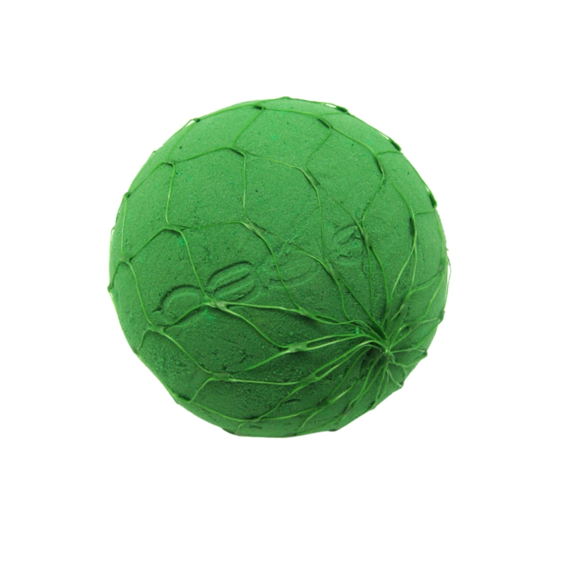 Esfera floral Oasis Deluxe, cubierta con malla protectora para soporte de flores en cualquier ángulo. Dimensión: 15 cm. Ideal para evitar desperdicio y crear figuras perfectas.