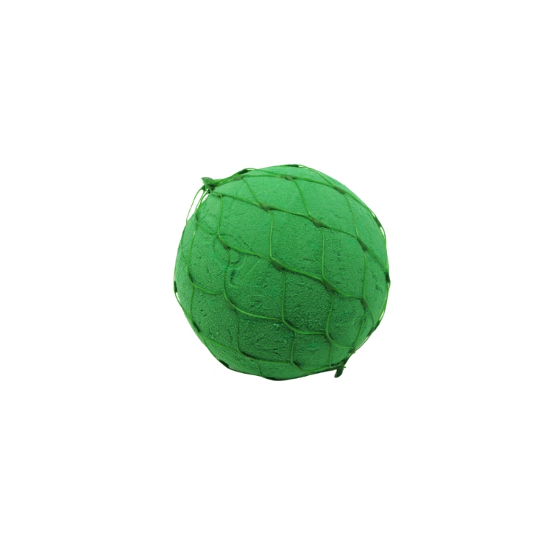 Esfera en espuma Oasis Deluxe, cubierta con malla protectora para soporte de flores en cualquier ángulo. Dimensión: 11 cm. Ideal para crear figuras florales sin desperdicio de material.