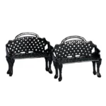 Set de 2 bancas coleccionables para patio. Perfectas para añadir funcionalidad y estilo a tu colección. Ideal para quienes buscan detalles realistas para completar sus Villas con encanto y practicidad.