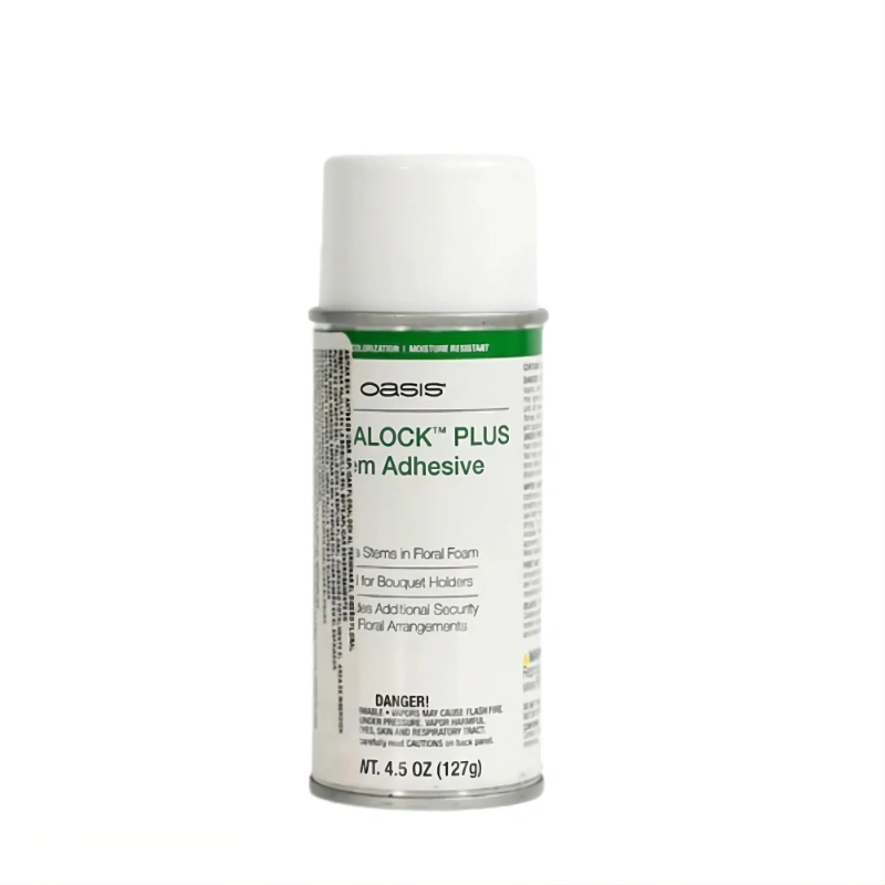 Adhesivo en spray Floralock, diseñado para fijar flores a espuma floral húmeda o seca. Proporciona firmeza y estabilidad a tus ramos, evitando que los tallos se desplacen. Secado rápido y fácil de aplicar, asegurando la integridad del diseño. Incluye aplicador especial.