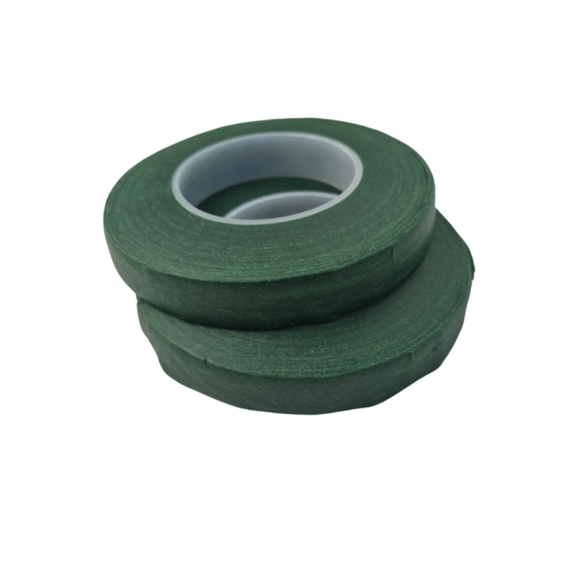 Cinta adhesiva floral verde Floratape OASIS, flexible y de alta resistencia. Se adhiere a sí misma y a los tallos alambrados sin pegarse a los dedos. Perfecta para arreglos florales, ya que protege y envuelve con firmeza sin dañar las flores. Incluye 2 unidades, cada una de 27m.