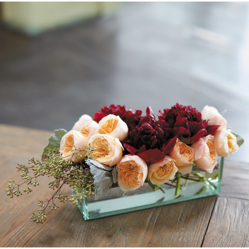 Agrega un toque minimalista a tu espacio con este elegante florero rectangular de vidrio transparente. Perfecto para crear arreglos florales sencillos o para exhibir suculentas que resaltan en cualquier ambiente.