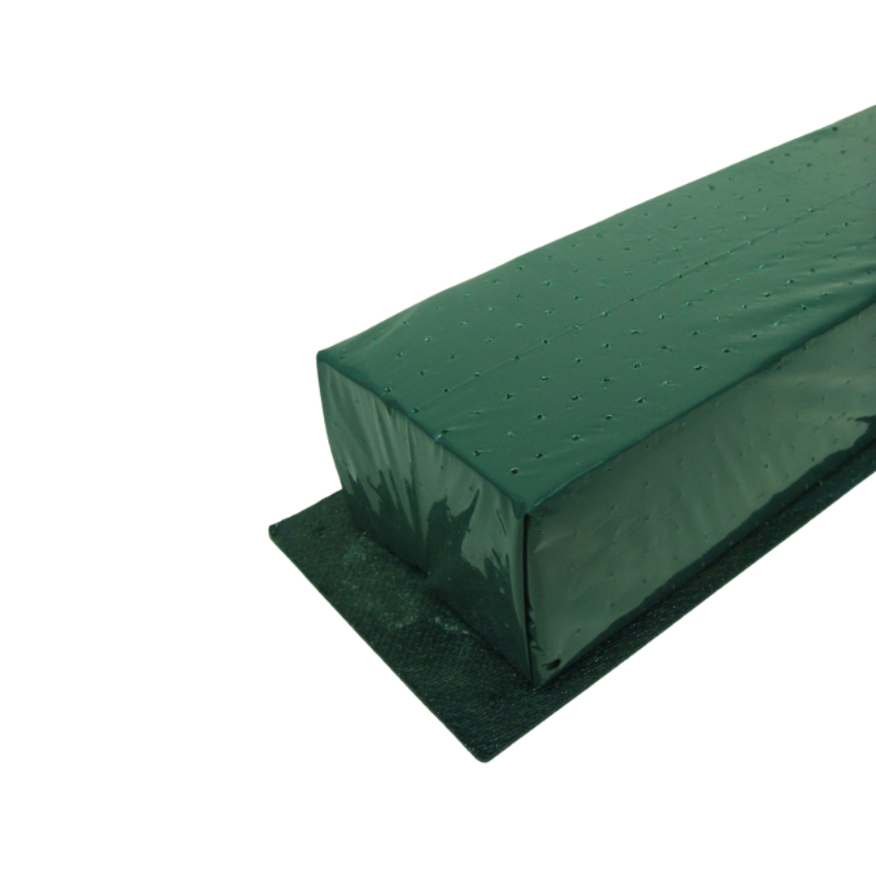 Jardinera Mini Oasis Deluxe, resistente y versátil, con base de fibracel y perforaciones para colgar. Envuelta en polietileno verde que retrasa la evaporación del agua. Dimensión: 61 cm. Ideal para arreglos florales duraderos.