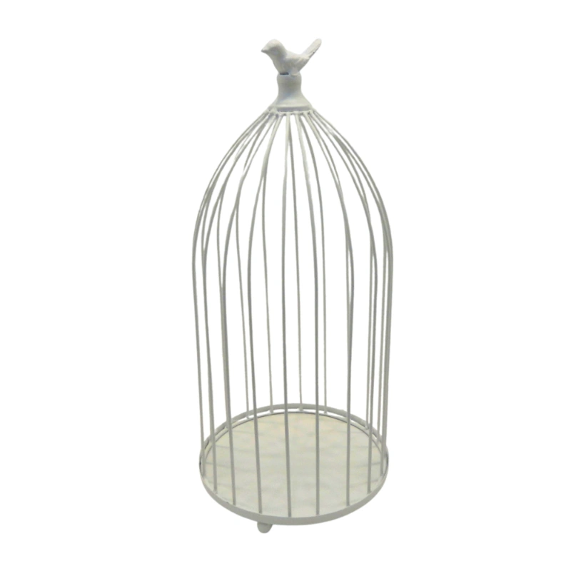 Jaula decorativa blanca de 22x22x42 cm, perfecta para crear ambientes románticos en eventos o interiores. Ideal para velas, arreglos florales o luces, personalizable con sprays «Design Master».