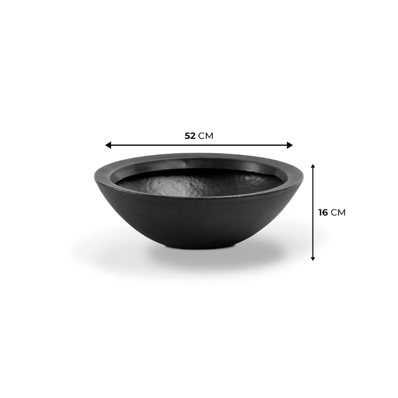 Macetero liviano fabricado en plastico 100% reciclado modelo Bacia 53×16 color negro, para uso interior y exterior.
