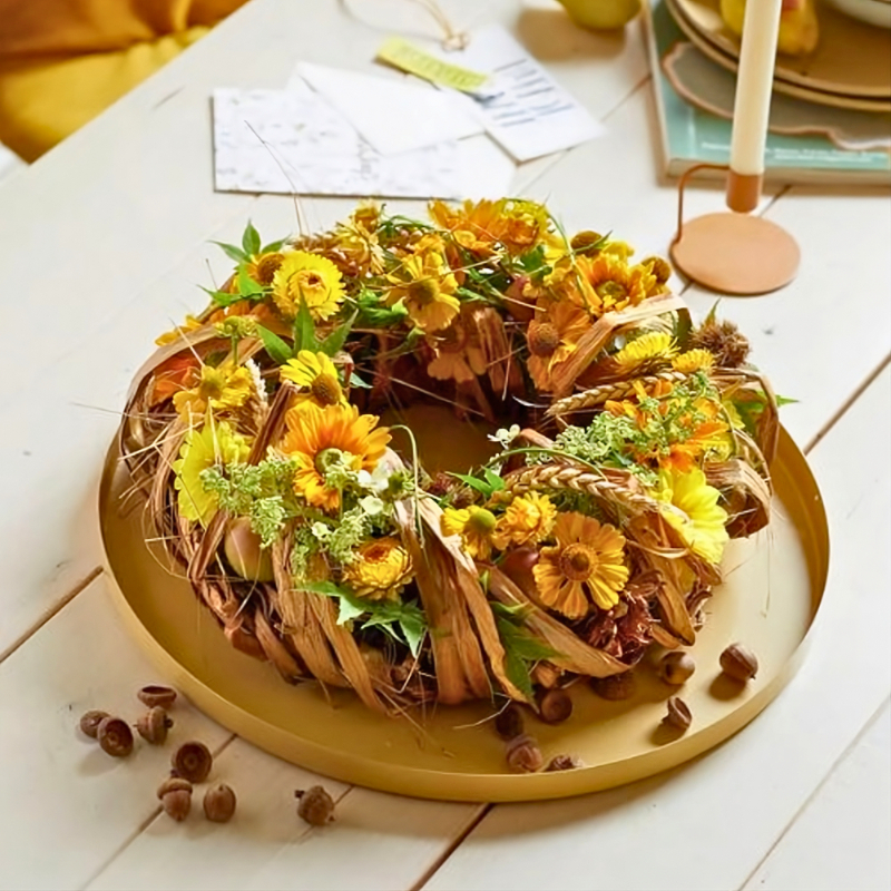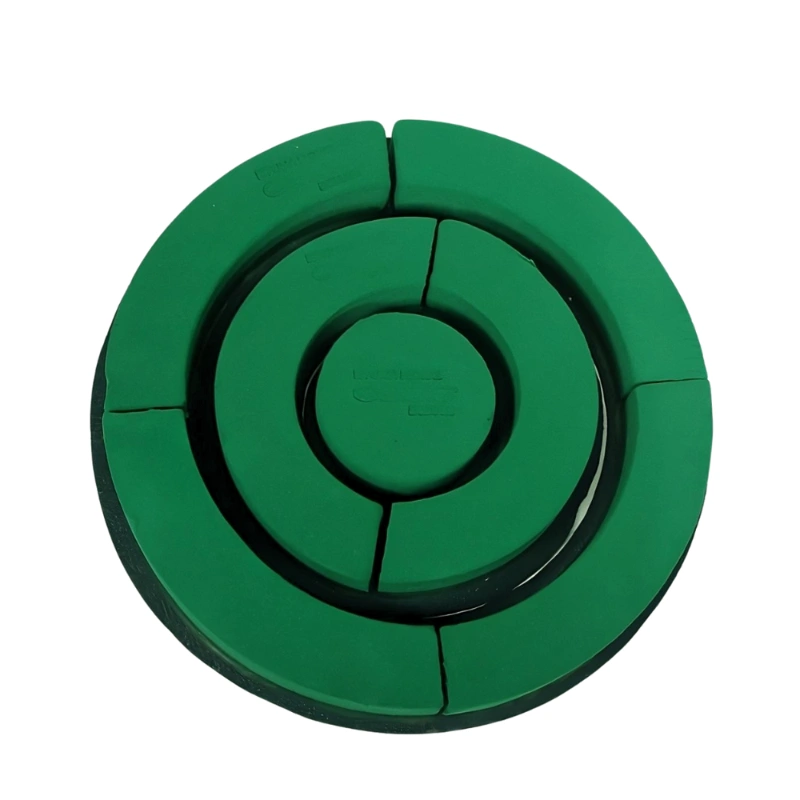 Set de Oasis con dos coronas (40 cm y 25 cm) y un disco de 10 cm, con base de MDF resistente y banda anti escurrimiento. Ideal para centros de mesa, adornos de puerta y eventos. Incluye perforaciones para colgar o sujetar.