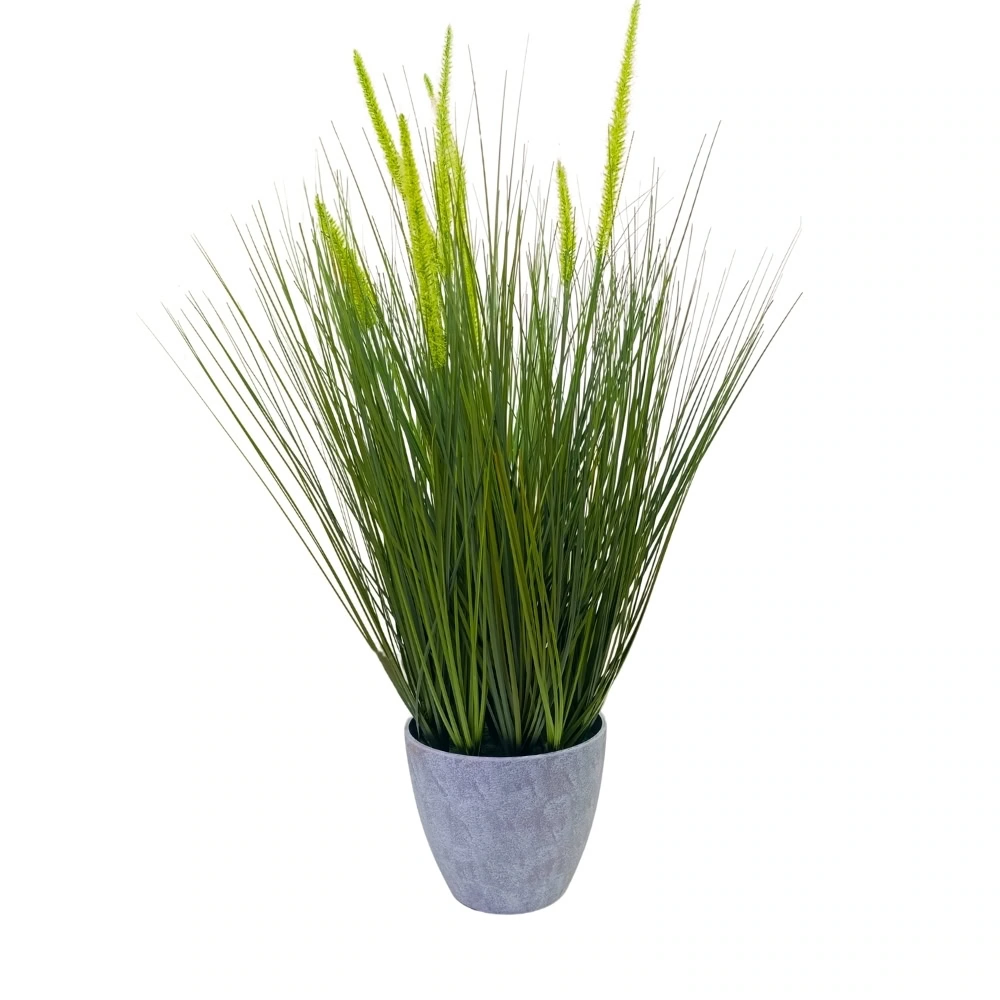 La Planta artificial Pasto Cebolla de 76cm de altura y 73cm de ancho es ideal para aportar frescura a tus espacios interiores. No requiere riego ni abono, solo necesita limpieza ocasional para mantener su brillo.