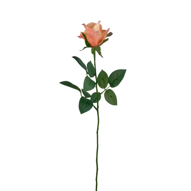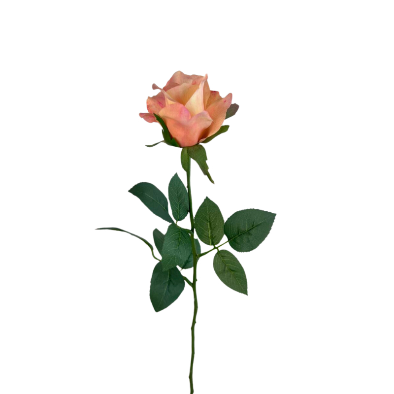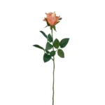 Flor artificial Rosa Alice de 62cm color Salmon. Crea arreglos de pared, para estantería o pequeños detalles florales que den un toque de alegría a tus espacios. Te recomendamos complementar con follajes para dar aún más naturalidad. No requiere invertir tiempo en cuidados especiales, ya que está hecha de suave tela teñida en distintos tonos y firme plástico que forman un producto de larga vida útil. Su uso es de interior, ya que no cuenta con filtro UV. Combínalas como quieras!