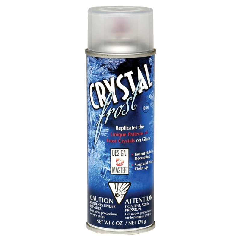 Spray CRYSTAL FROST de 800cc, ideal para decoraciones navideñas. Proporciona un acabado de escarcha que replica la apariencia de vidrio esmerilado. Cubre hasta 0.9m2 y seca en 10 minutos.